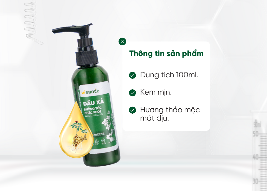 Dầu xả thảo dược dưỡng tóc chắc khỏe 100 ml visante với chiết xuất từ thiên nhiên, giúp dưỡng ẩm sâu, phục hồi hư tổn, giảm gãy rụng và làm mềm tóc, mang đến mái tóc suôn mượt, chắc khỏe từ gốc đến ngọn.