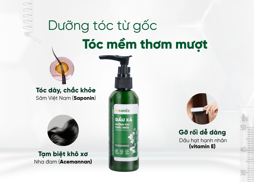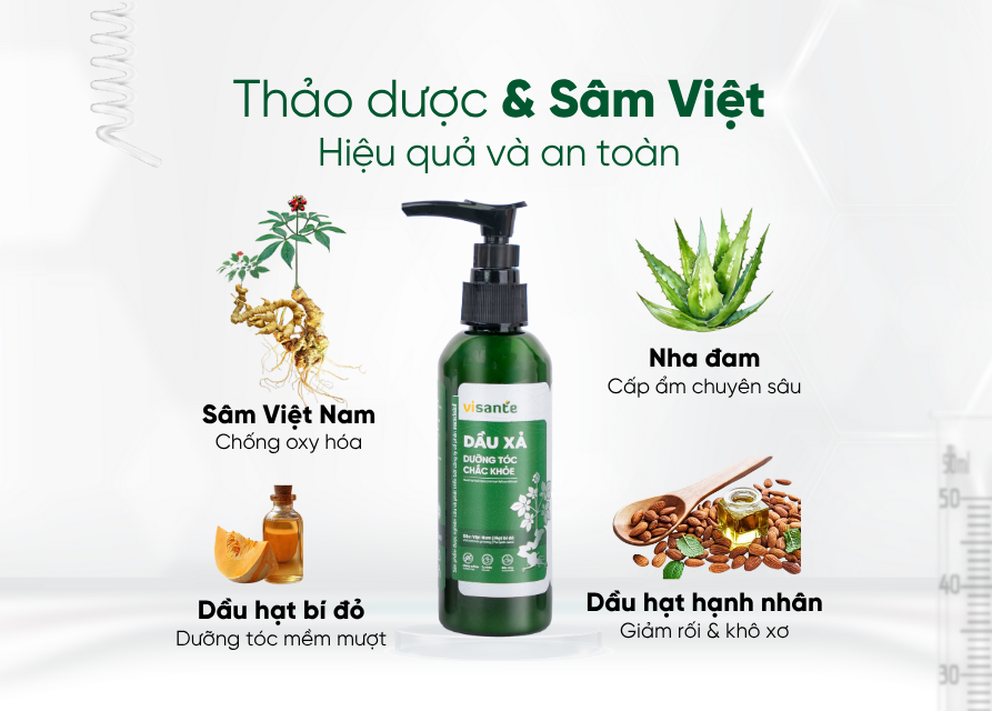 • Giảm gãy rụng và rối tóc: Chiết xuất sâm Việt Nam, dầu hạnh nhân và dầu hạt bí đỏ giúp củng cố nang tóc, ngăn ngừa rụng tóc và giảm rối hiệu quả.