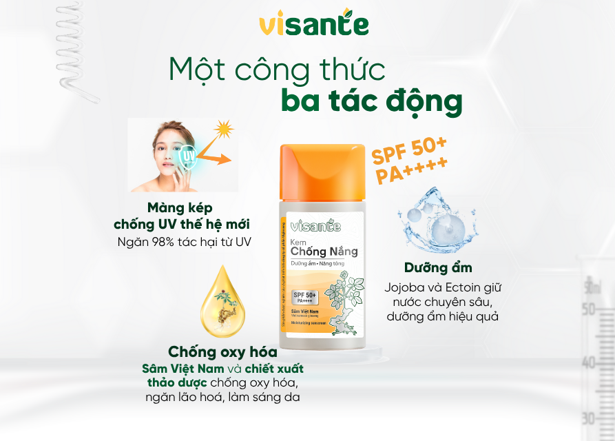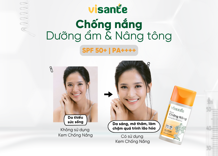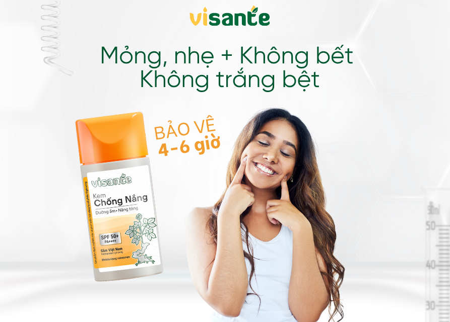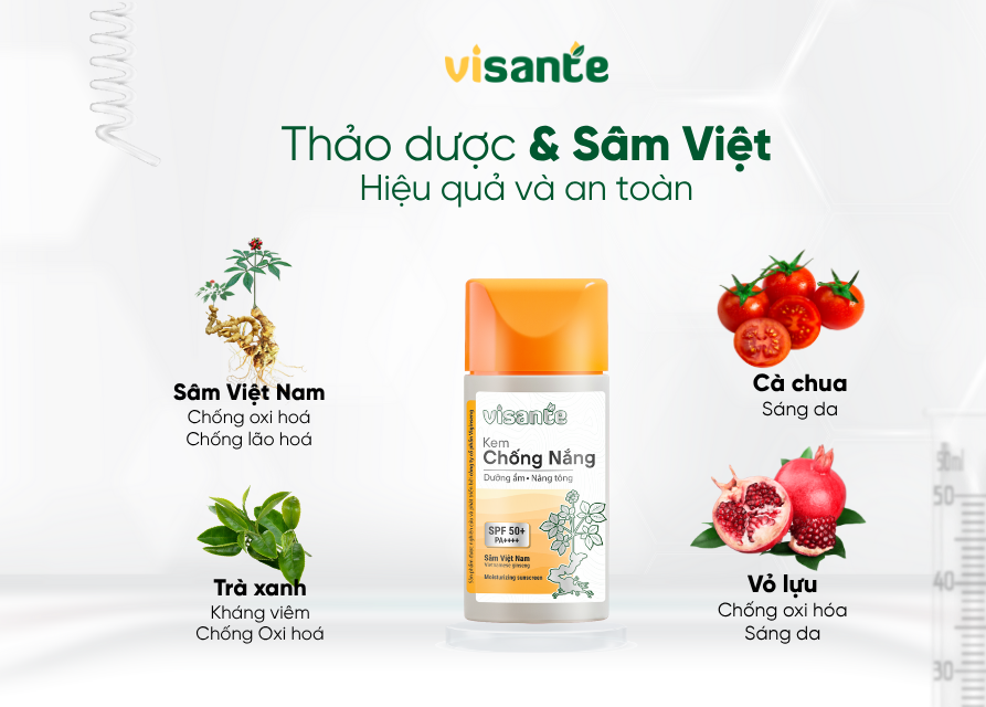 Kem Chống Nắng Dưỡng Ẩm Nâng Tone VISANTE | Chiết suất từ sâm Việt Nam và các loại thảo dược phù hợp mọi loại da 50ml