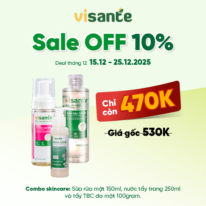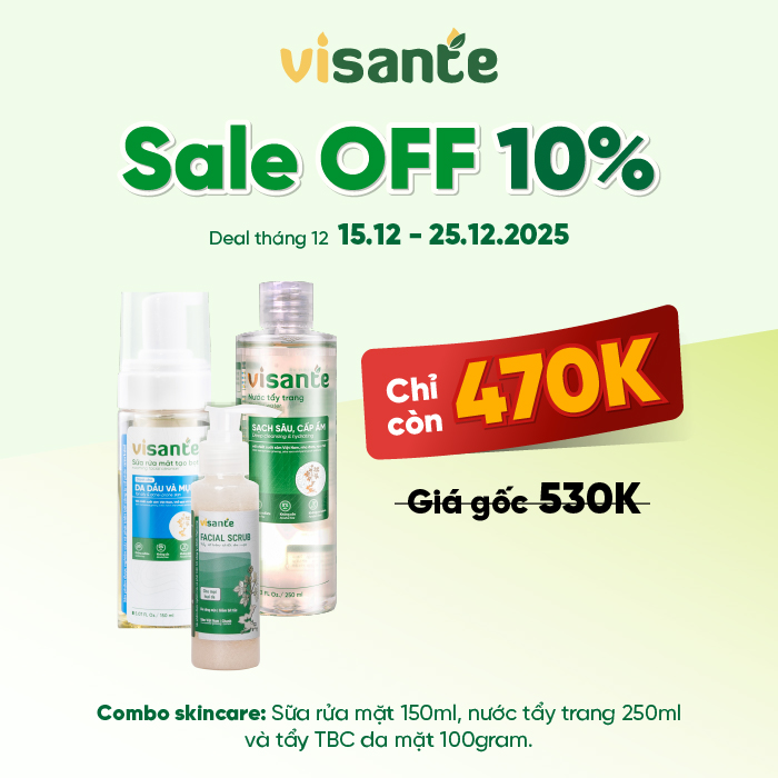 Tận hưởng liệu trình làm sạch chuyên sâu với trọn bộ 3 bước thiết yếu từ Sâm Việt Nam và Dược Liệu Tự Nhiên VISANTE, được thiết kế chuyên biệt cho làn da dầu mụn. Combo giúp làm sạch sâu, kiểm soát dầu nhờn, giảm bít tắc lỗ chân lông và hỗ trợ ngăn ngừa mụn tái phát, cho làn da sạch thoáng – khỏe mạnh – đều màu hơn mỗi ngày.