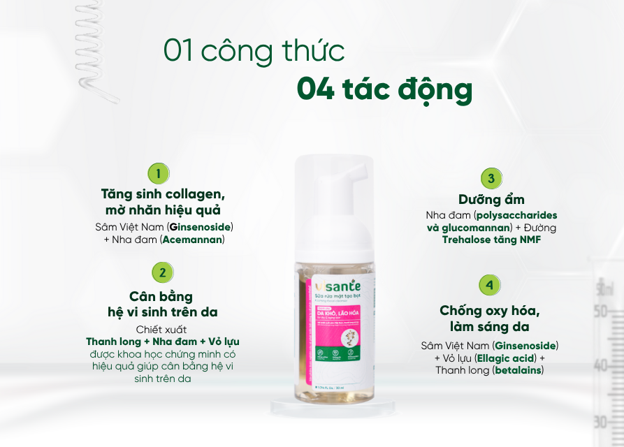 Sữa rửa mặt cho da khô, lão hóa 30 ml visante giúp dưỡng ẩm sâu, chống lão hóa hiệu quả, mang lại làn da mềm mịn và tươi trẻ.