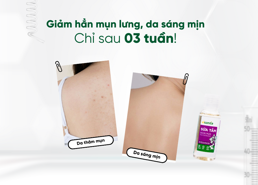 Giảm mụn lưng, ngừa viêm: Thành phần thiên nhiên giúp làm dịu vùng da kích ứng, giảm viêm đỏ, ngăn ngừa và hỗ trợ điều trị mụn lưng hiệu quả.